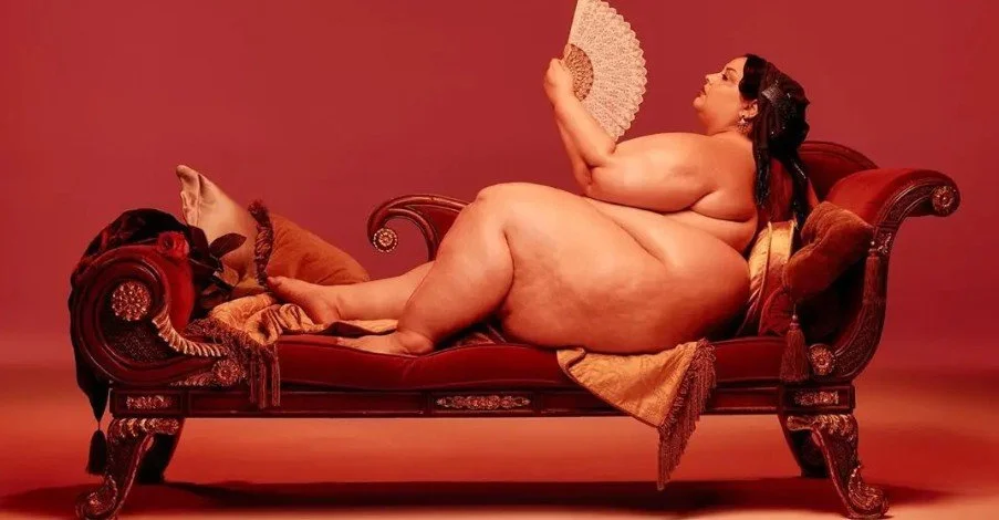 In winter 2026 actress, model, and artist Angelina Duplisea sat down with managing editor Wesley R. Bishop to discuss her work, body size activism, and the persistence of anti-fat bias in the media. Duplisea is an internationally recognized artist whose work has appeared in Vogue Portugal, Vogue Greece, and the 2019 music video “Mother’s Daughter.” She often works with photographer Julia SH whose interview with NMR can be read here. The following interview has been edited for clarity and length.