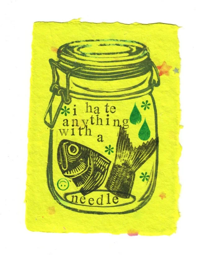 I would not describe my flavor of OCD as tidy, neat, or orderly. It was a messy, chaotic nightmare that eluded me for so long due to my own misconceptions of the disorder. I wanted to represent this in the suite of prints I created as Artist in Residence. The use of type in this work highlights the “little worries” that build pressure under the surface when processing rumination and compulsions. Seemingly inconsequential thoughts quickly turn into symptom-checking, a new bump on the body sparks excoriation, and a sore throat becomes a trip to urgent care.